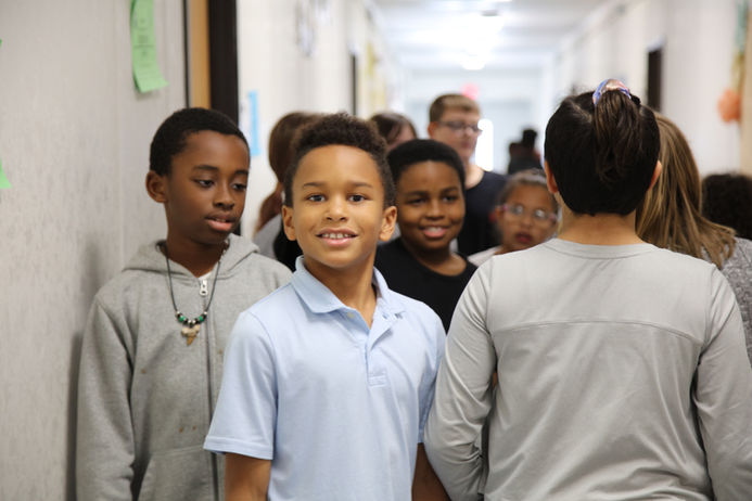 RLA teachers are utilizing a common pacing guide that scaffolds standards from grades Kindergarten to 7th and include thematic units. These thematic units will be followed by all grade levels simultaneously, and many will culminate with a family night to share students' work. For example, for the first few weeks of school, all students will be learning about rules and responsibilities within a school, key components of our social-emotional curriculum, citizenship, and schools around the world.